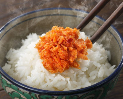 焼き鮭の甘味と辛子明太子の辛みを合わせた絶妙な味を、ご飯とともに、酒のつまみに、料理にと幅広くお楽しみ下さい。
