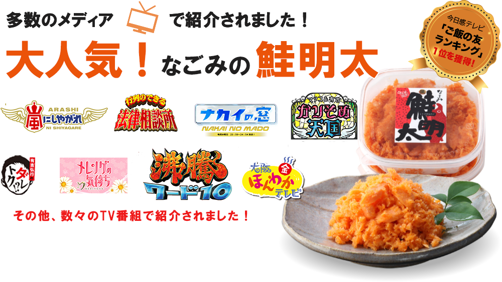 当店人気No.1の「鮭明太」から店主オリジナルの万能調味料「神の酢」、数ある博多のうまいもんから選び抜いた「なごみ太鼓判シリーズ」まで豊富な品揃えをご用意しております。
